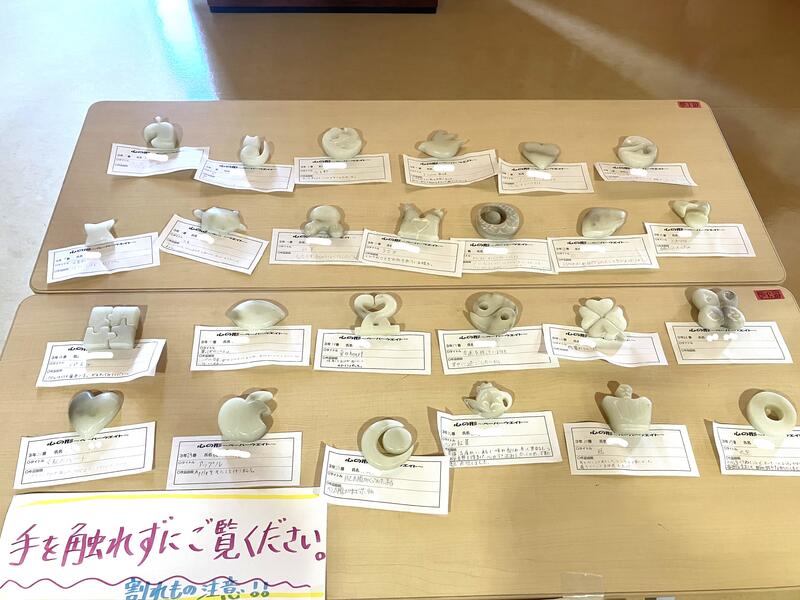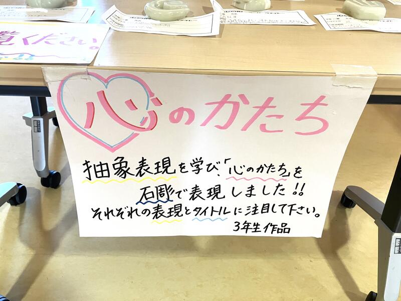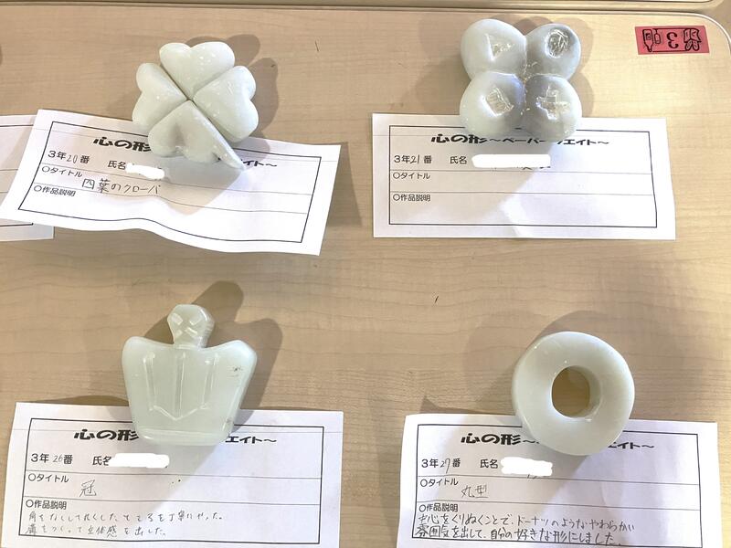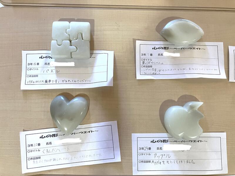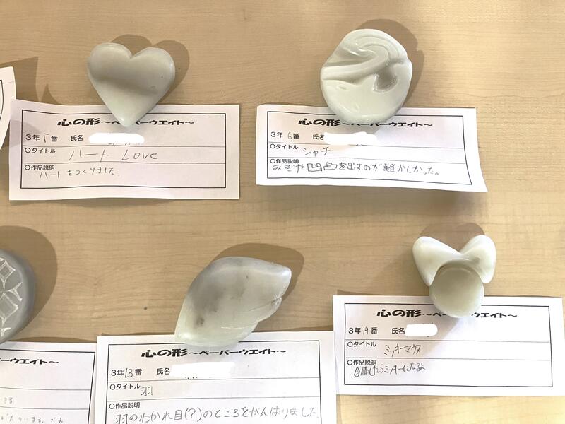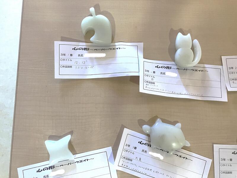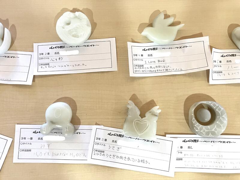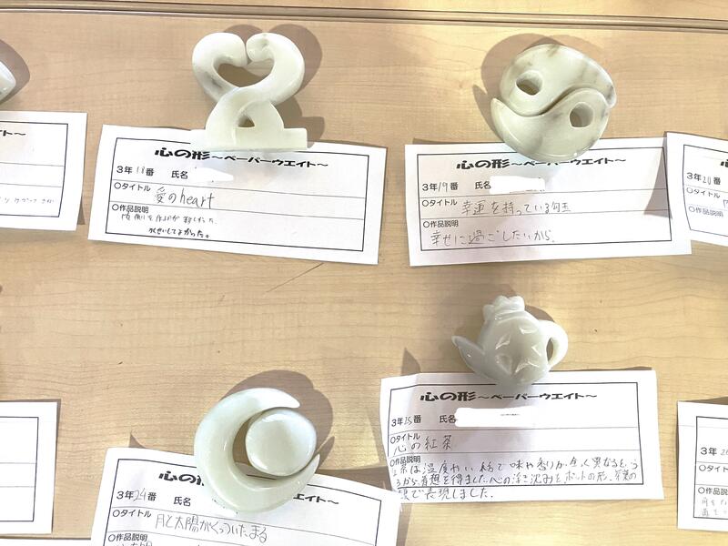 「心のかたち」のタイトルで、彫刻で作成したペーパーウェイトです。