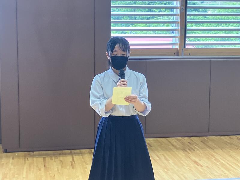 生徒を代表して生徒会長が激励の言葉を述べました。