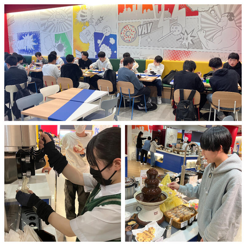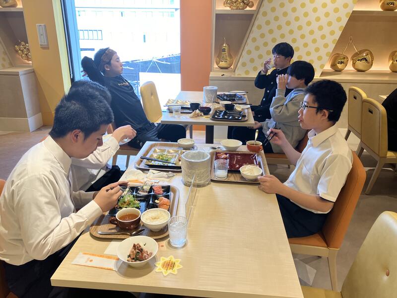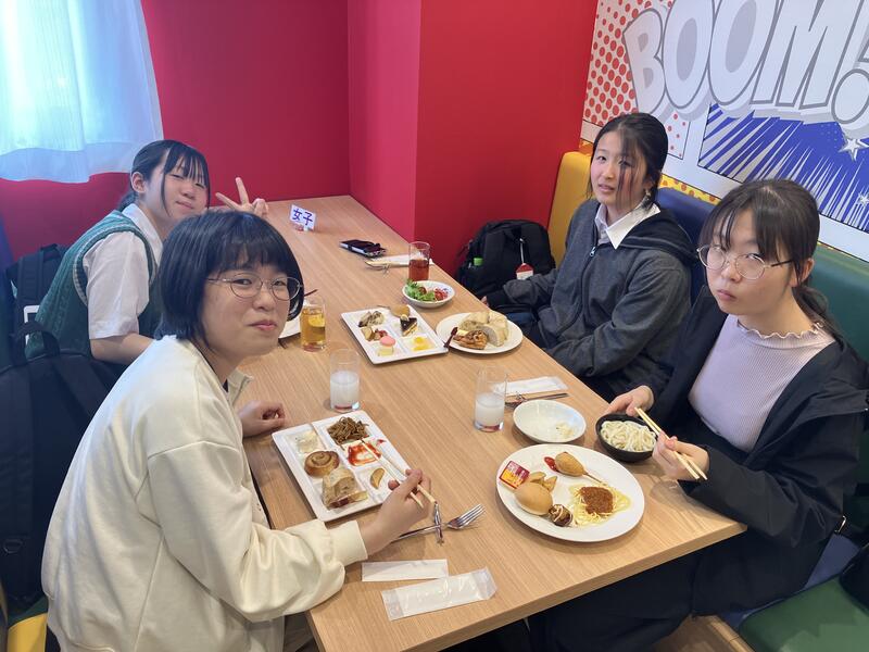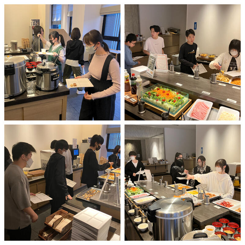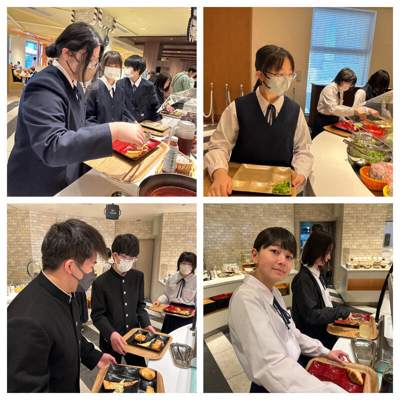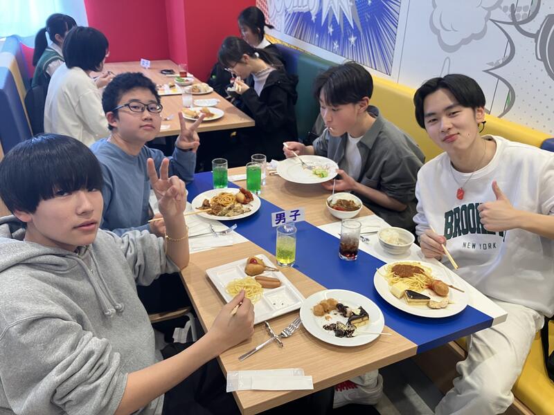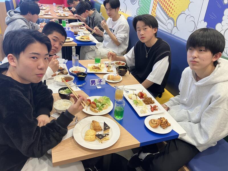 お昼はバイキング。デザートもたくさんあったりと、生徒のテンションも上がっていました。