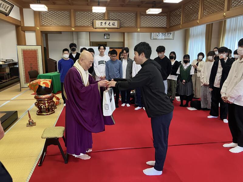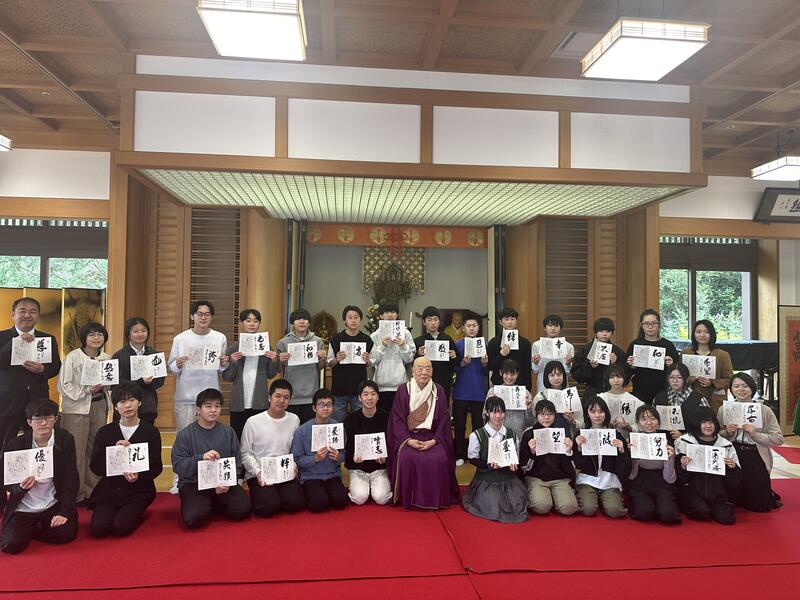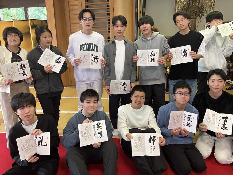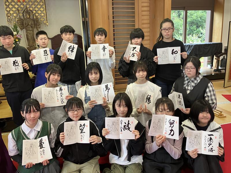 生徒達は、貫主様の字が入ったパンフレットを一人一人いただきました。
