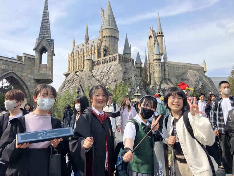 生徒達のお楽しみの大本命!ユニバーサルスタジオジャパンに到着しました。