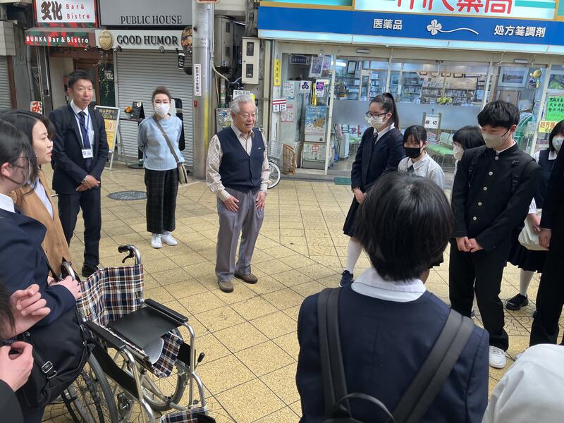 朝食後は、京橋商店街に行き、「商人体験」を行いました。