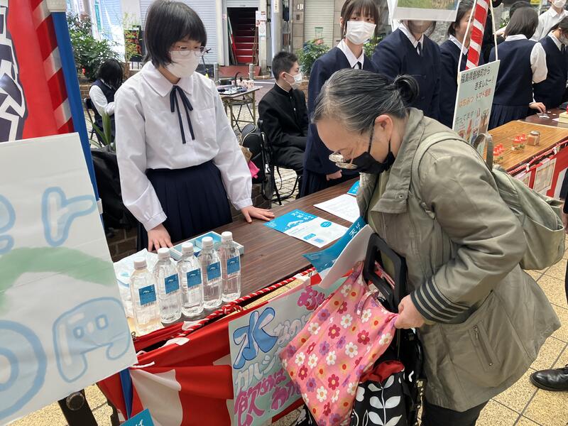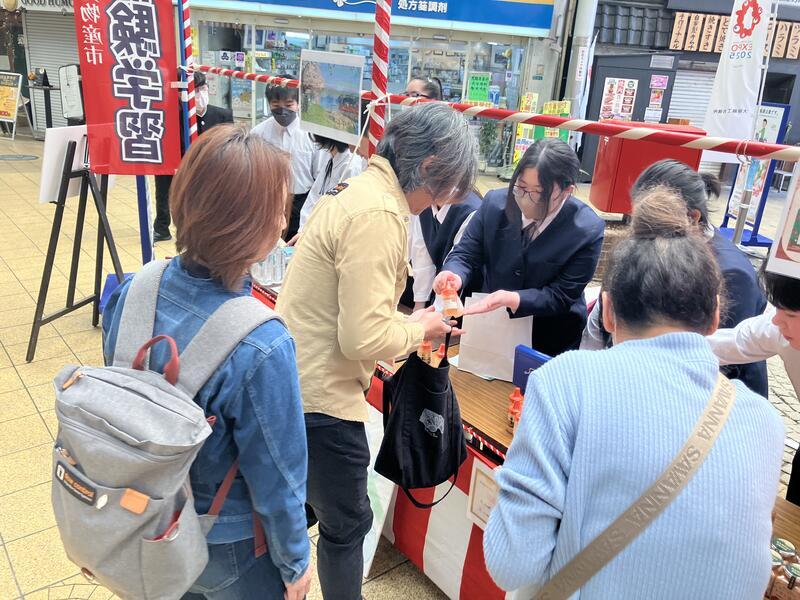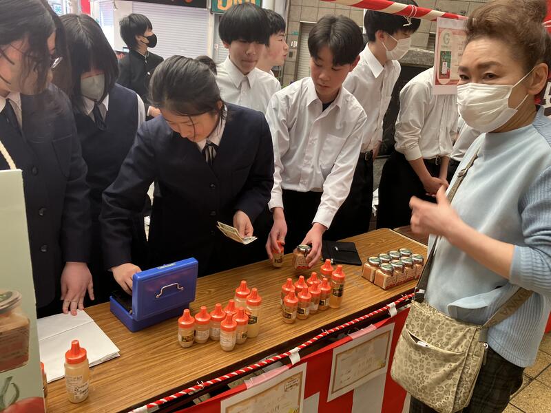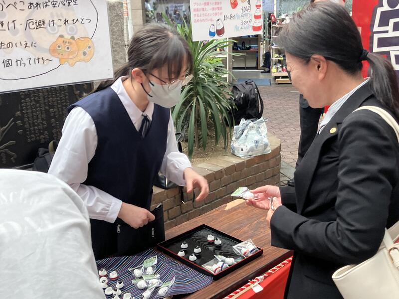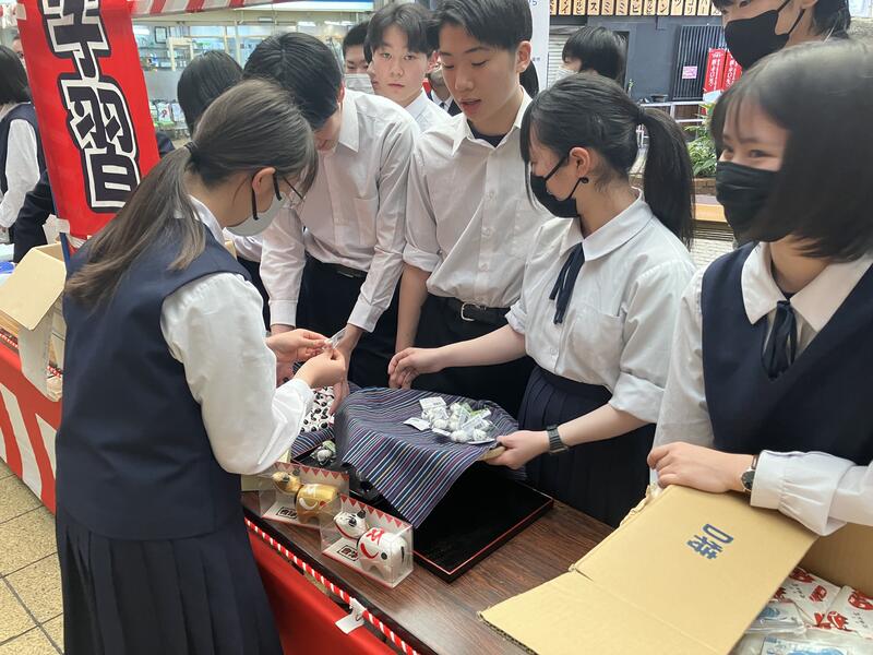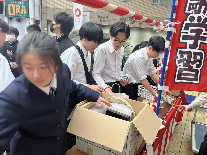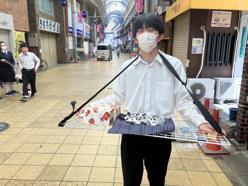 大きな声で、呼び込みをしたり、商品の説明をしたり、売り子として商店街の中を歩いたりと、それぞれの班が工夫して販売していました。