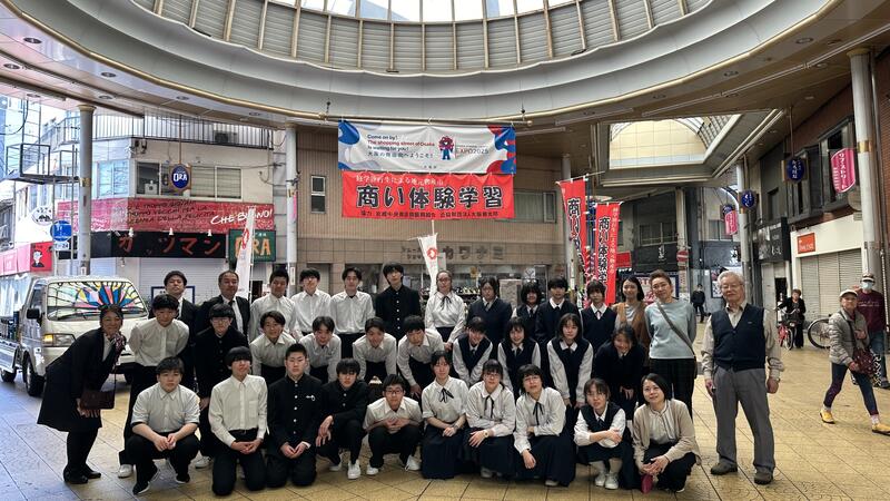 商人体験が終わり、最後に商店街の方と一緒に記念写真を撮りました。