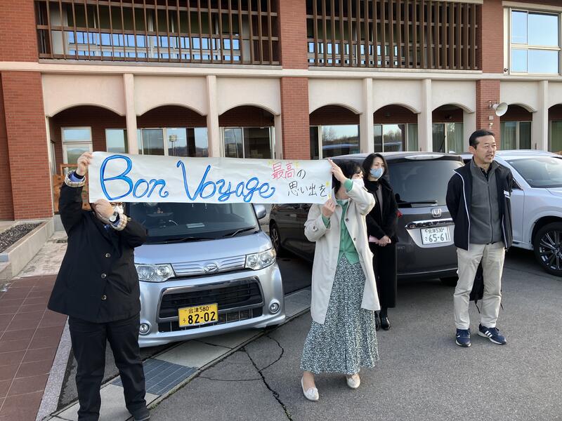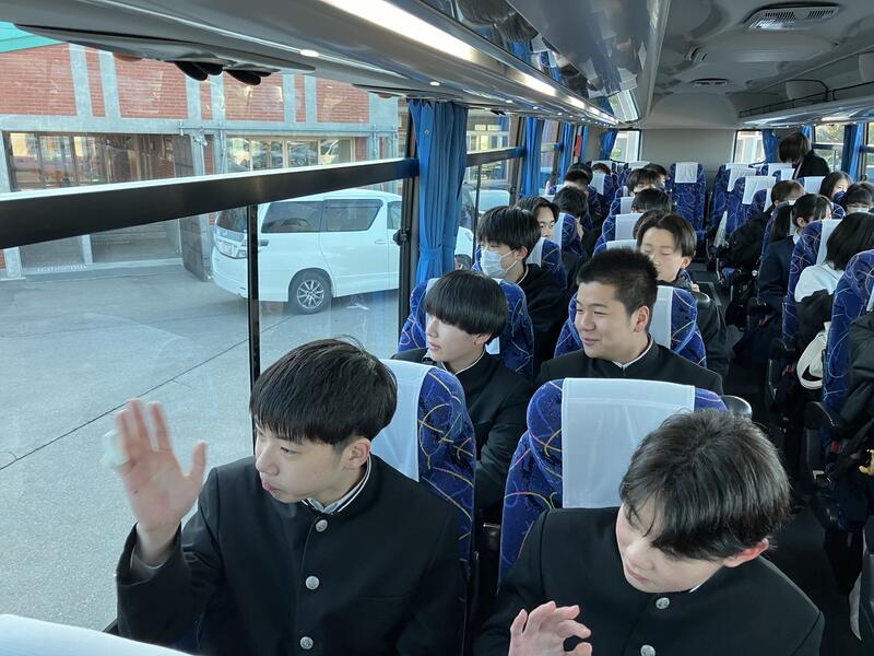 保護者や先生方に見送られながら、福島空港に向けて出発しました。