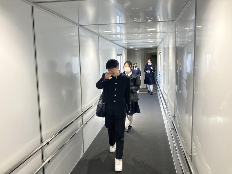 出発式を行い、実行委員長のあいさつでは「3日間楽しい修学旅行にしましょう」と話がありました。