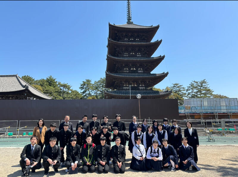その後、興福寺の国宝館と五重塔を見学しました。天気もすごく良くて、すばらしいスタートです。