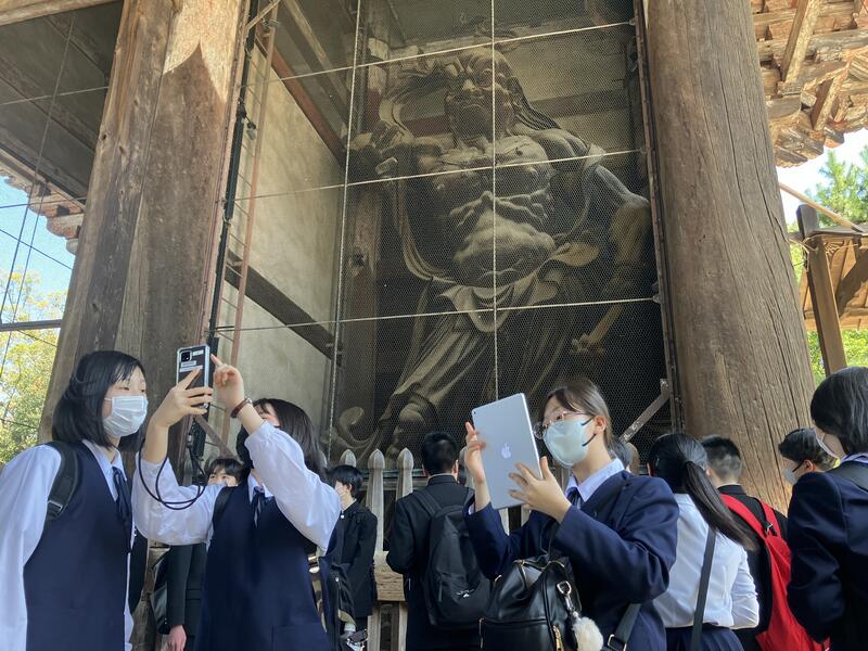 全員で東大寺の大仏の見学をしました。大きな大仏に感動している生徒が多かったです。
