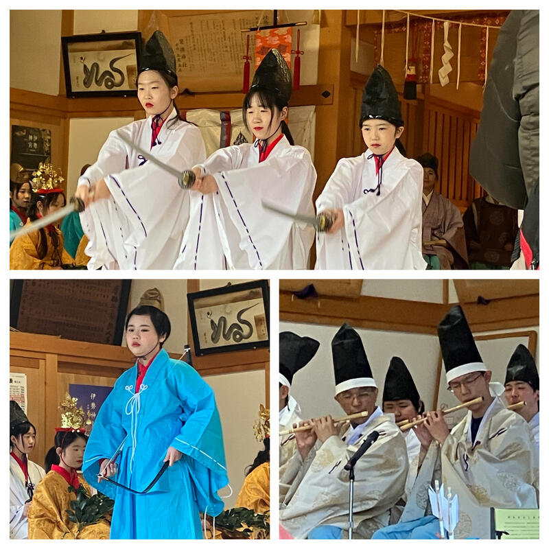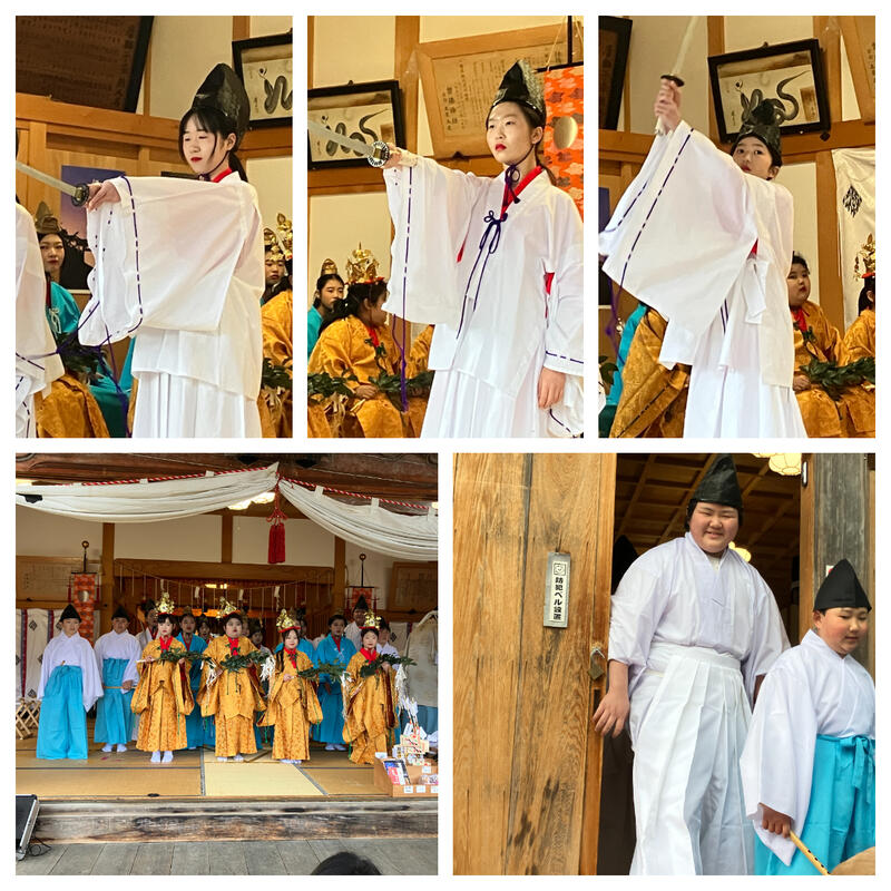 巫女舞には、5人の中学生が参加していました。うち2人の2年生は、これが最後となるようでした。