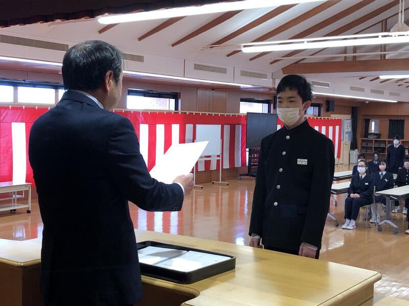修了式では、修了証書を学年代表生徒が受け取りました。