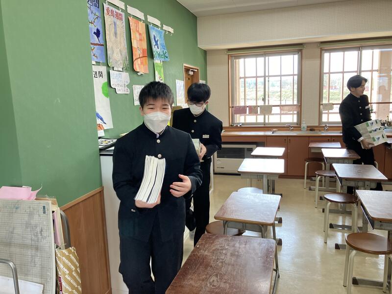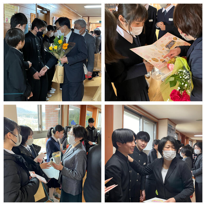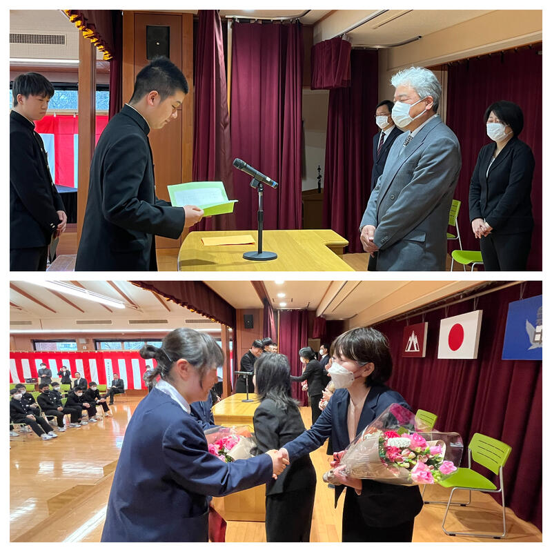 その後、生徒会の代表の生徒からお別れのメッセージと、花束を贈呈しました。