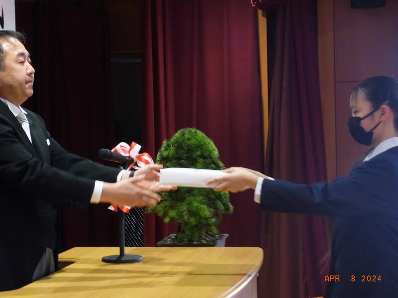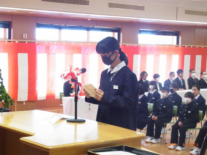 また、新入生を代表しての「誓いの言葉」では、何事にも一生懸命取り組みたい、たくさんの経験を積み重ね、夢の実現に向けて努力し続けたい、と決意を述べてくれました。