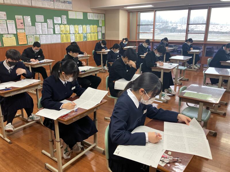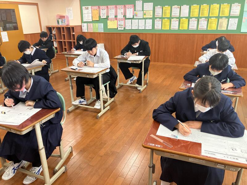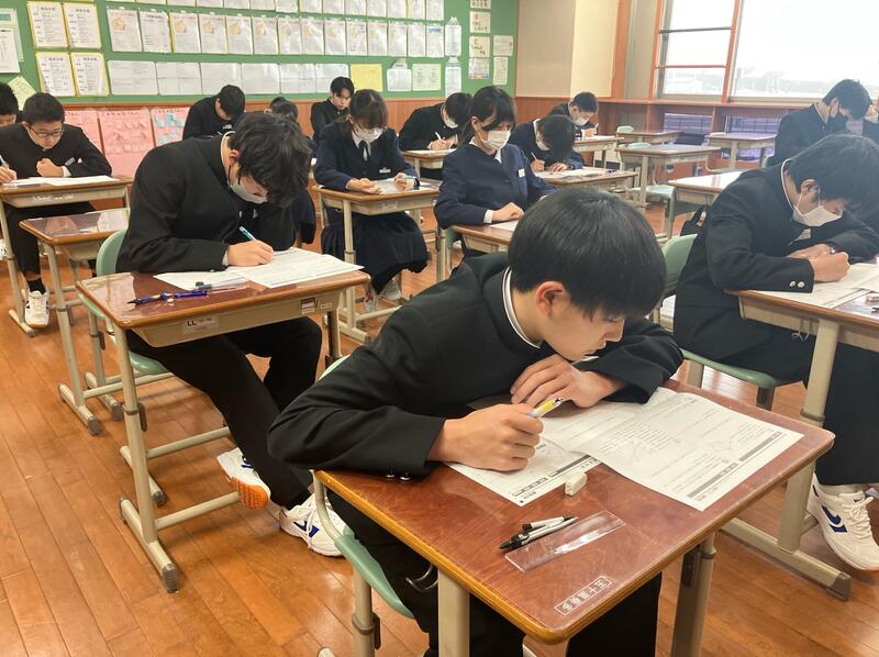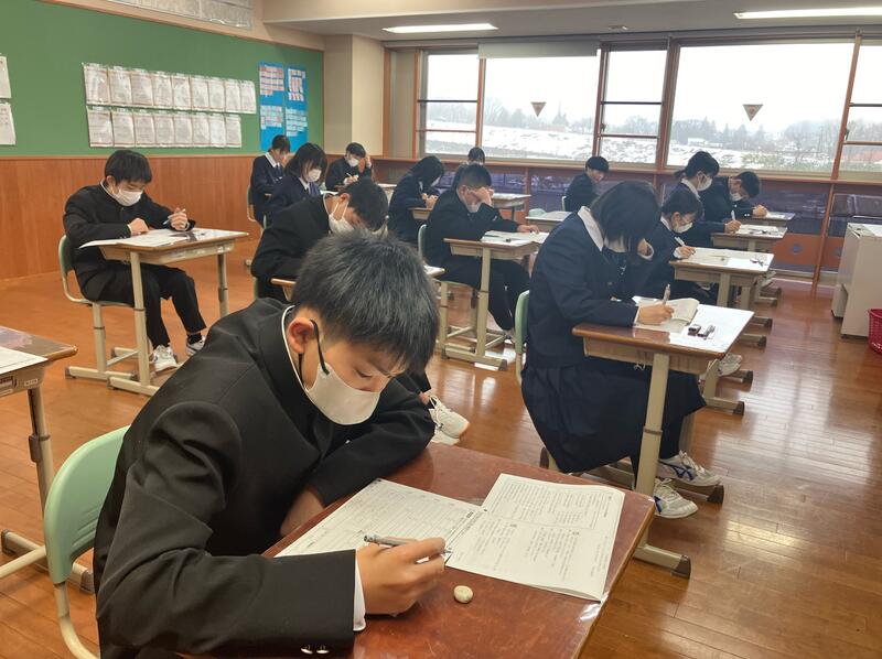 本日は、3年生は実力テスト、1・2年生は冬休み確認テストです。