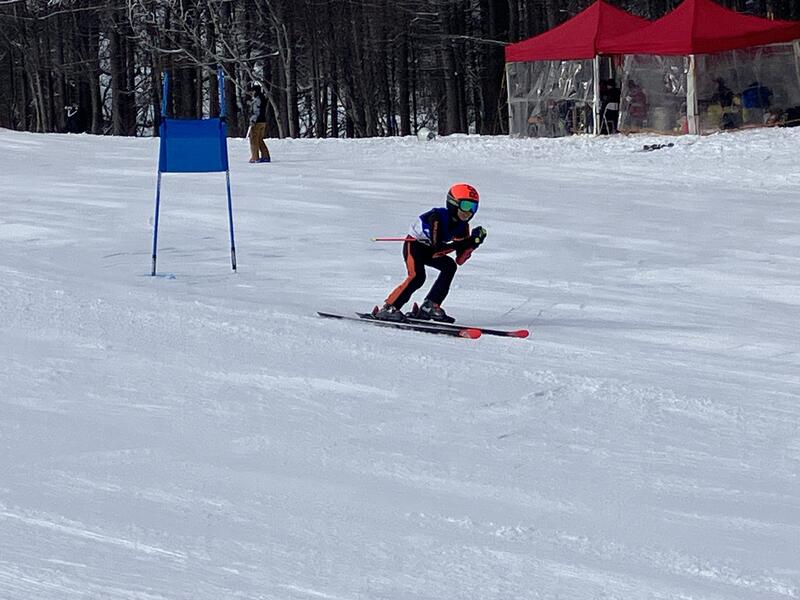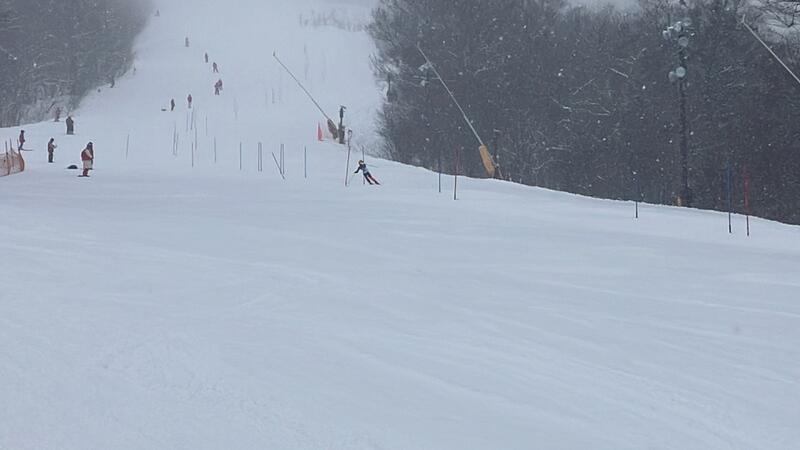 今日はジャイアントスラロームです。2本滑り、合計タイムで競います。