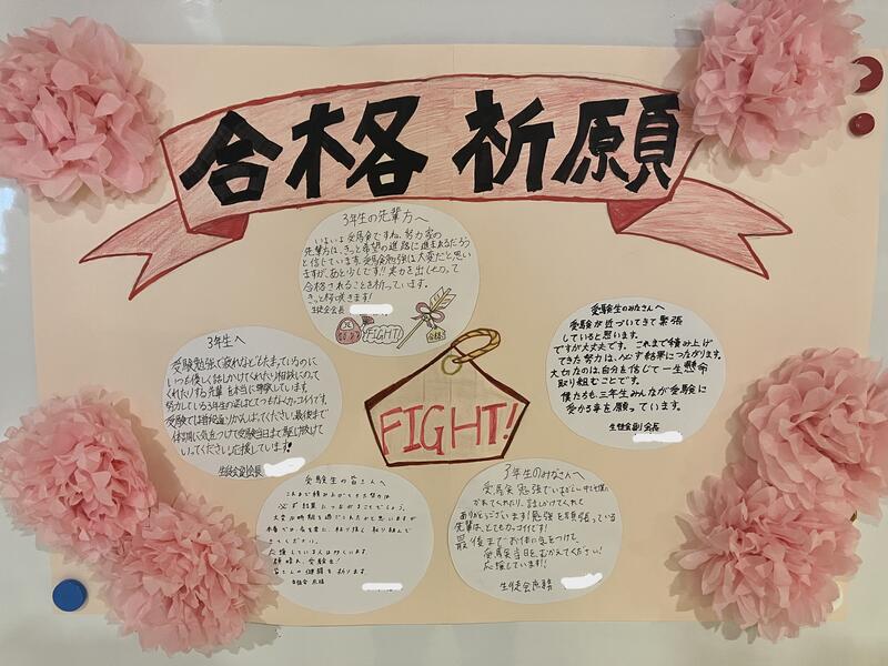 1月は私立高校の入試です。3年生も緊張しているかと思いますが、今までの努力が発揮できるように祈っています。