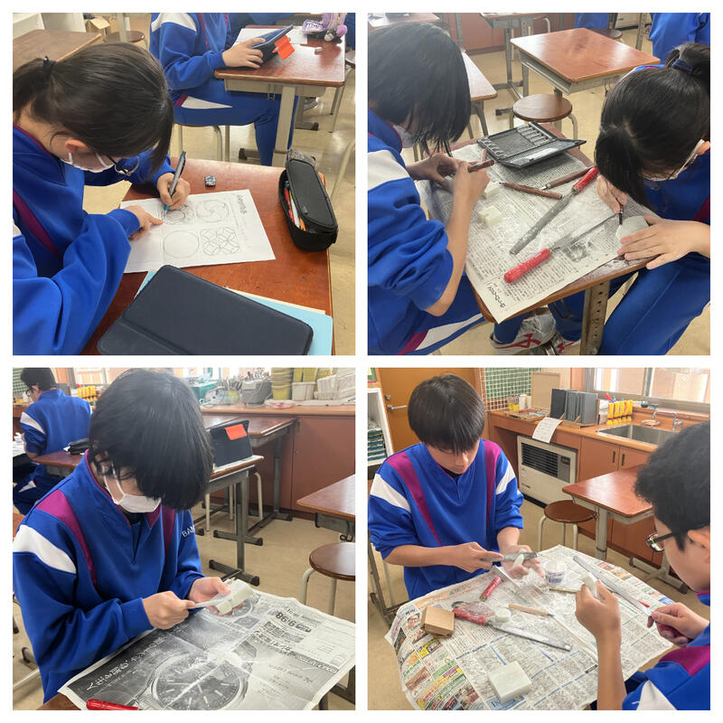 表彰自体は2学期末に行っていましたが、作品が現在美術室前の廊下に展示してあります。