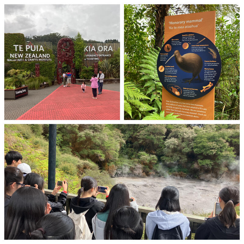 ガバメントパークで記念撮影をした後、テ・プイア文化センターで、間欠泉やキゥーイ、マオリ文化、ハカのショーを見学しました。(キゥーイは撮影禁止でした。)
