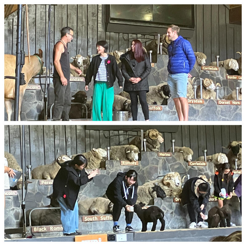 ステージ上で、牛の乳搾り体験や子羊へのミルクをあげる体験をした生徒もいました。