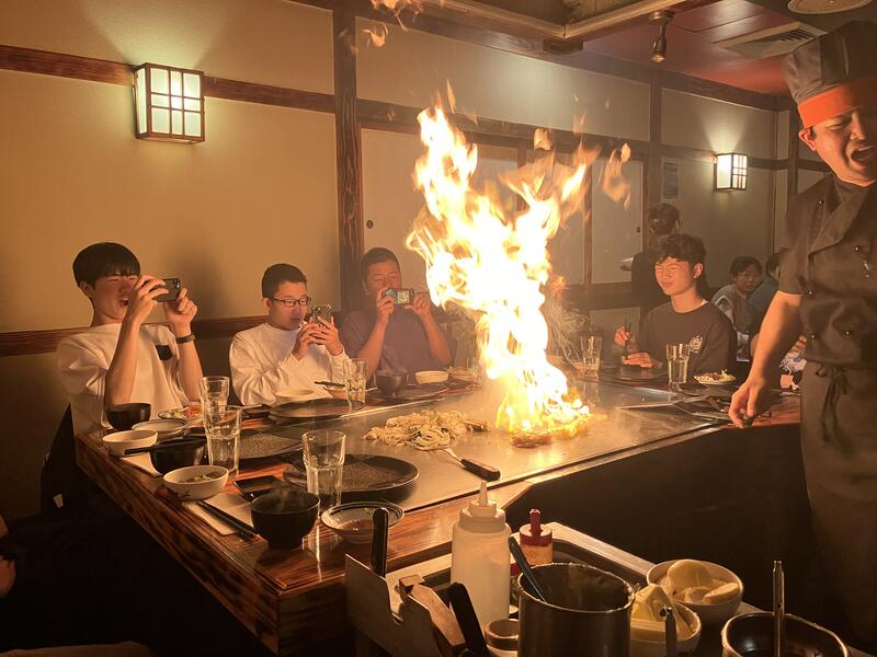 夕食は鉄板の前でのパフォーマンスもあり、楽しい時間でした。