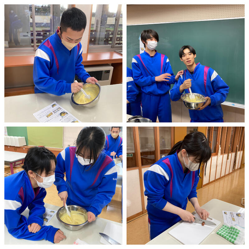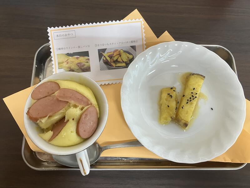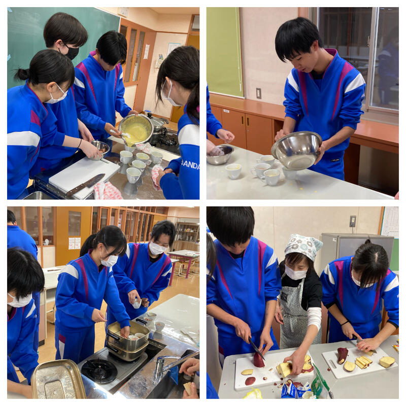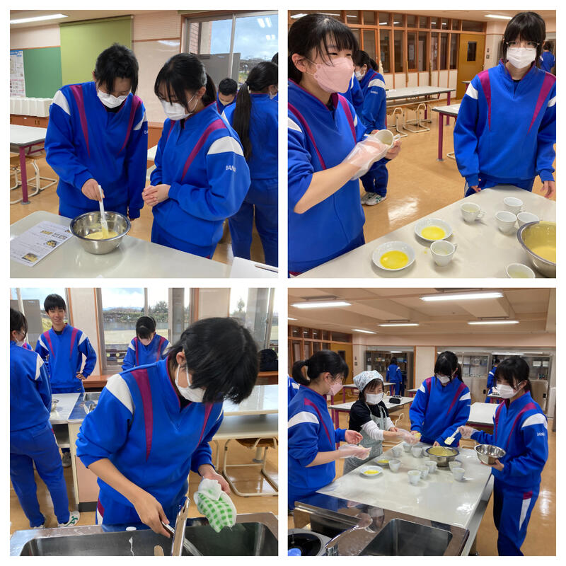 3年生の家庭科では、幼児のためのおやつ作りの調理実習を行っていました。