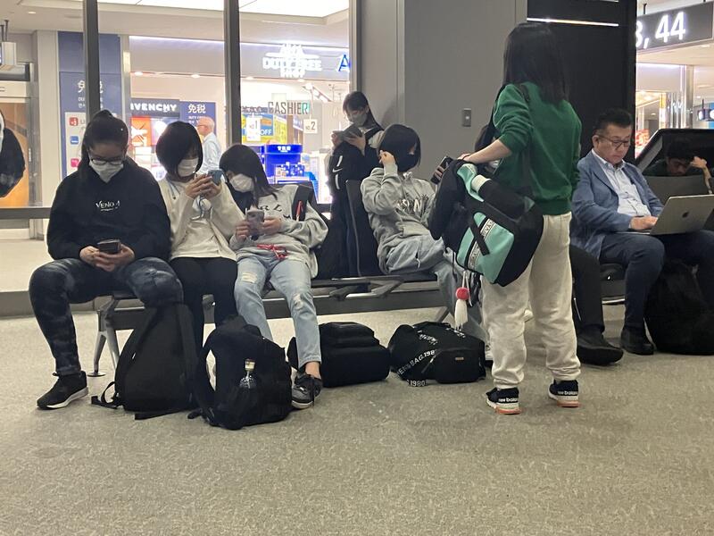 今は搭乗口前でのんびり出発を待っています。