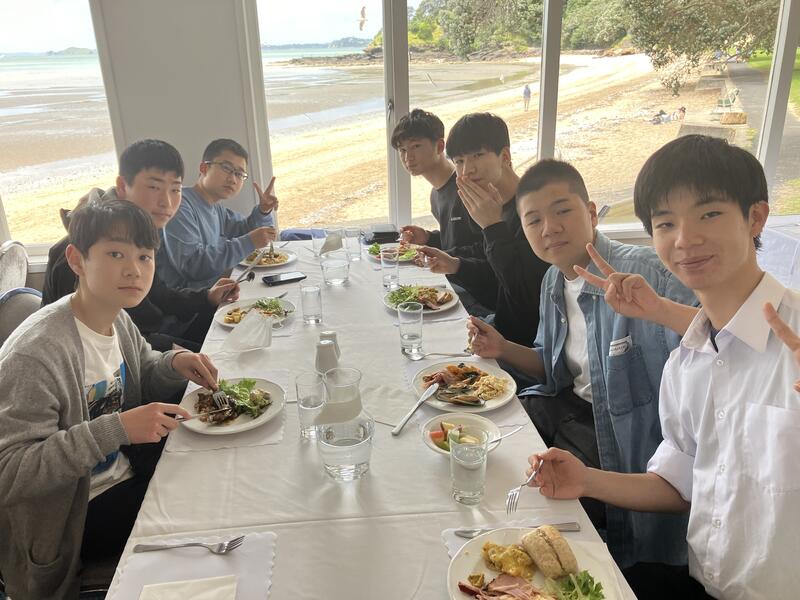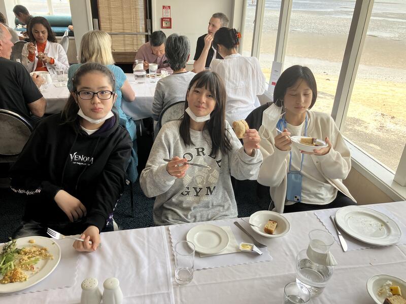 昼食場所は、チェルトナムビーチの美しい景色が見えるレストランでビュッフェをいただきました。
