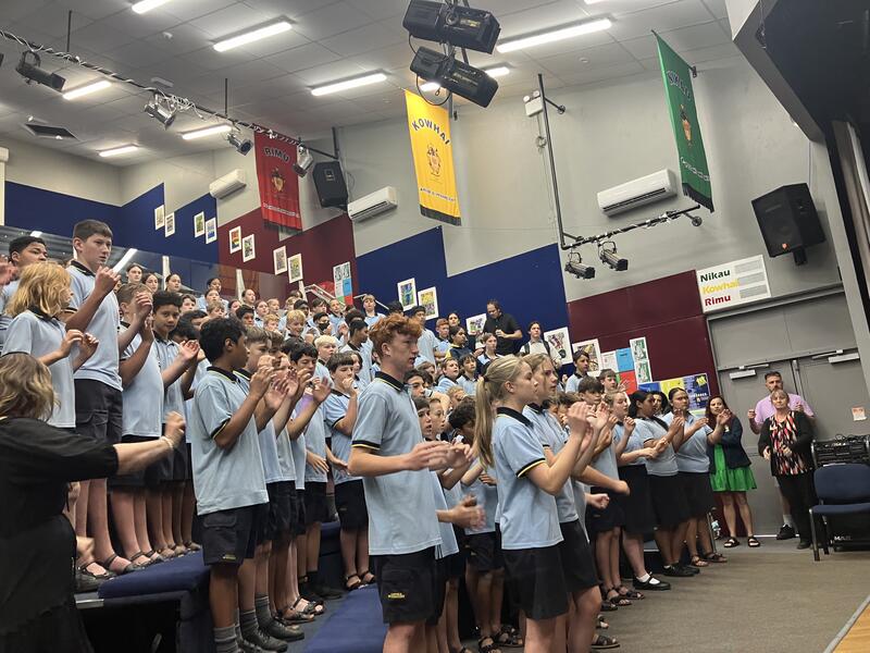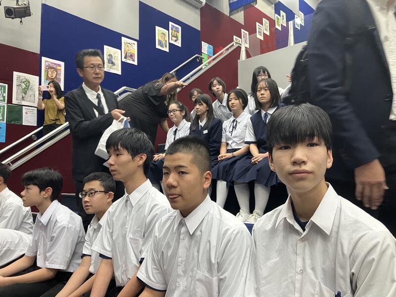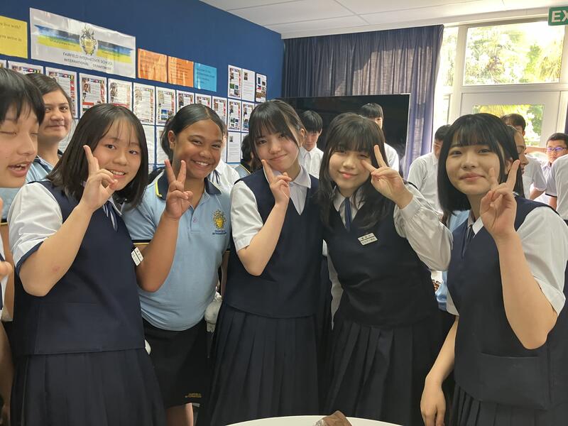 各ホームステイ先から登校し、最初にウエルカムセレモニーで、現地校から歓迎を受けました。