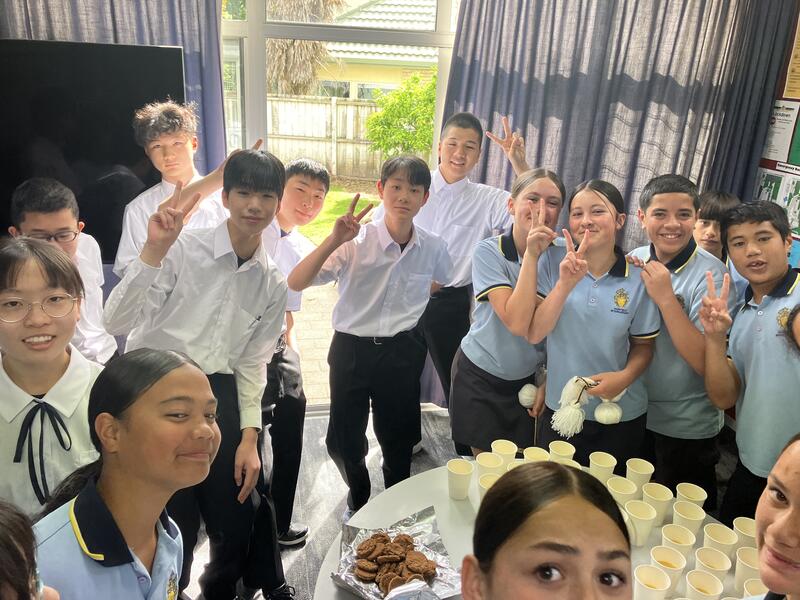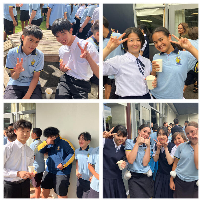 その後、バディとなる生徒たちと一緒にお菓子を食べたり、ジュースを飲んだりして交流しました。