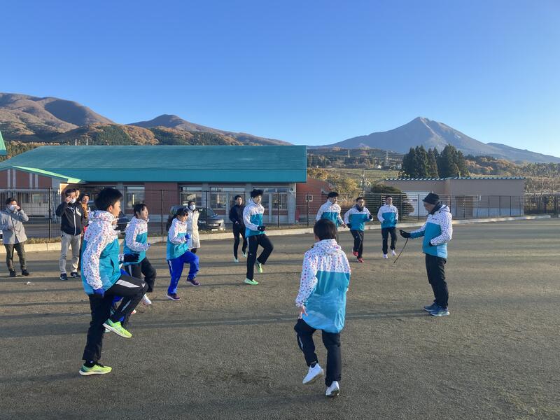 今日の朝練は、ふくしま駅伝磐梯町チームの皆さんと一緒に練習をしました。