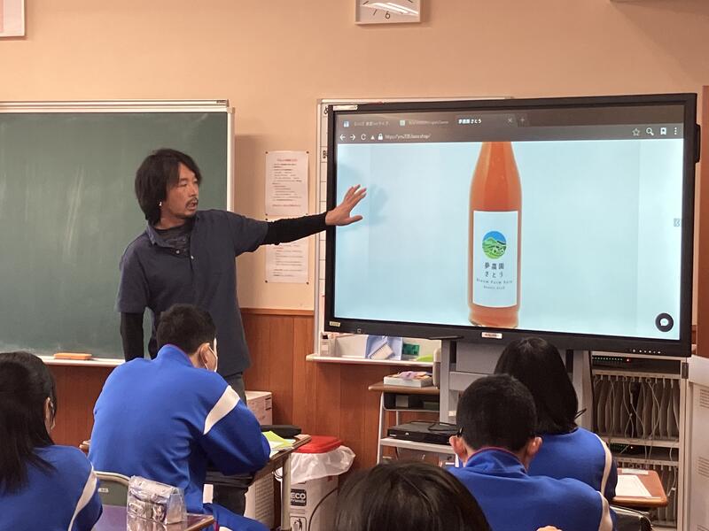 修学旅行事前学習として、今回は本校PTA会長でもある夢農園さとうの社長様に来ていただきました。