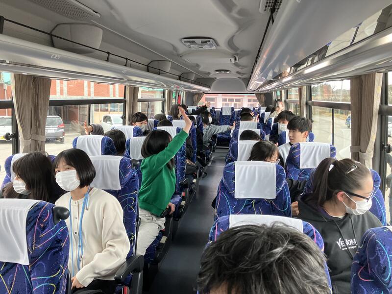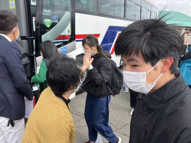 しかし、元気いっぱい集まった23名の生徒たちは、保護者と同級生、先生たちに見送られ、出発しました。