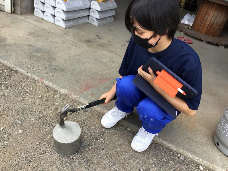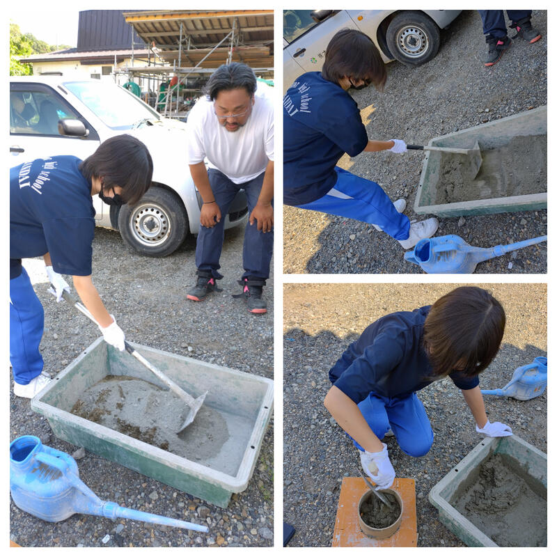 1日目は、現場の見学に連れて行ってもらったり、午後は実際にモルタルづくりを体験させてもらいました。