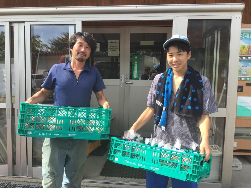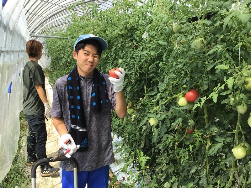 午後には、収穫したトマトを袋詰めし、道の駅へ出荷するのにも同行できたようです。