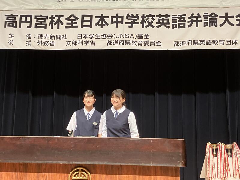 地区大会と同じく、本校生徒が進行役を務めました。他の学校の先生からも、すごく発音もいいし,堂々としててすごいねと褒められました。