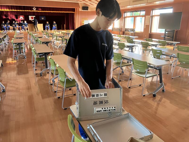明日の生徒会役員選挙に向け、放課後に選挙管理委員会の生徒たちが準備をしていました。