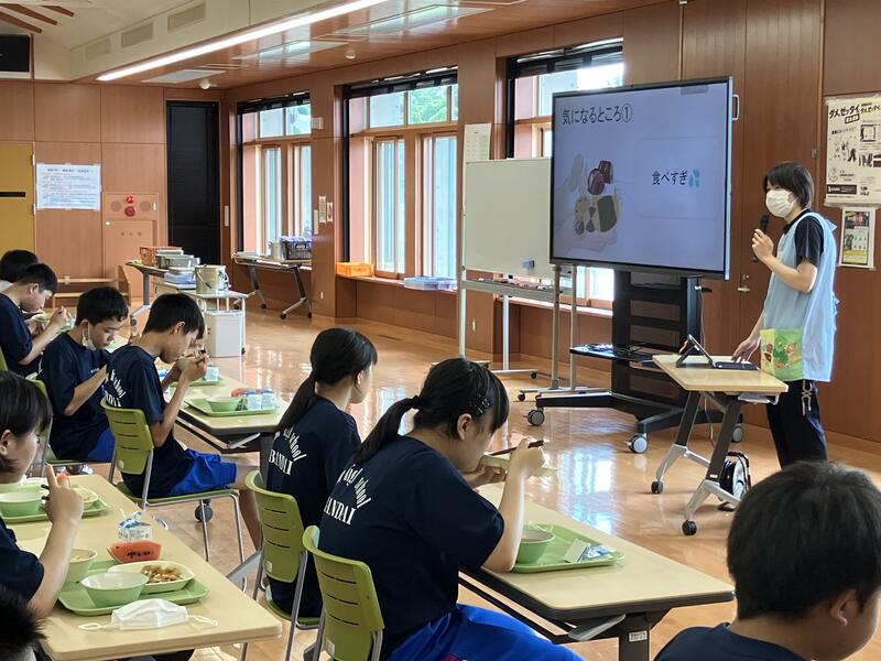 本日は町の栄養教諭がいらして、栄養教室をお昼の時間に行いました。