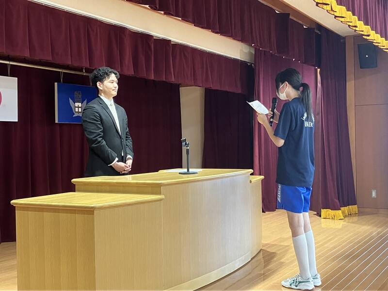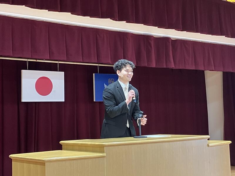 ALTの先生の挨拶では、3年前に磐梯町に来てから、生徒たちと一緒にいろいろな活動をして,貴重な3年間になったことや、各学年の生徒へのメッセージをお話してくれました。