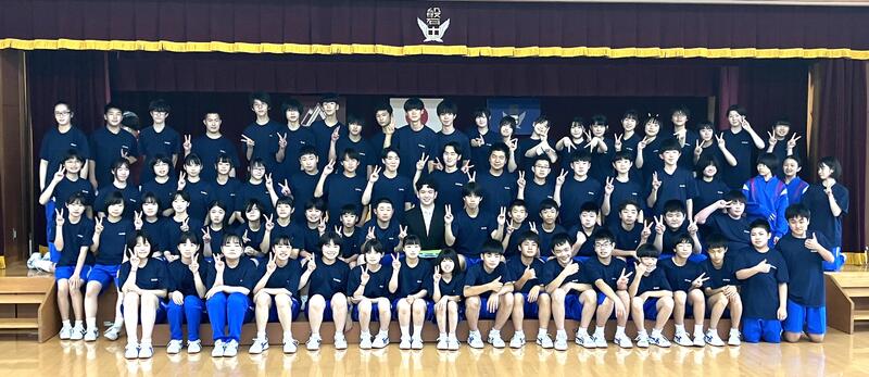 続いては各クラスからのメッセージを先生に渡して、その後、全員で校歌を歌いました。