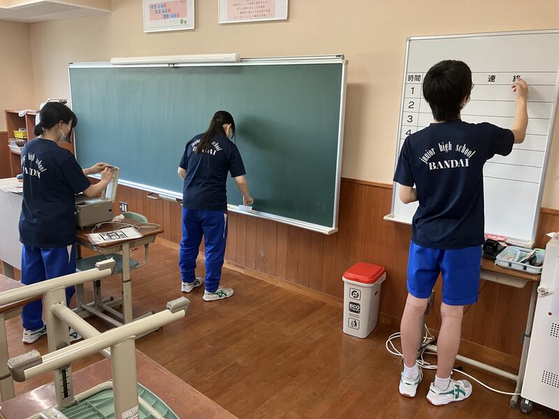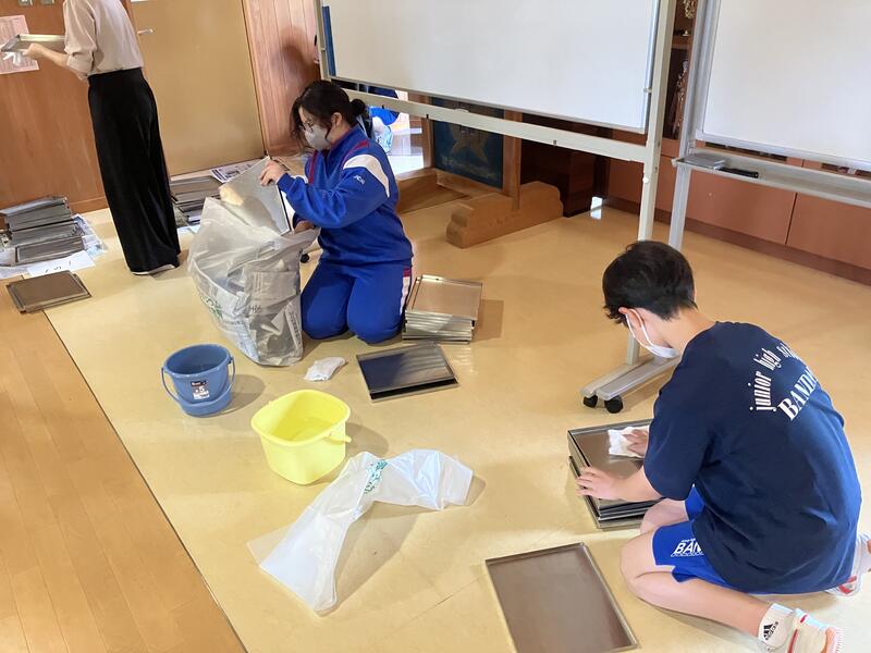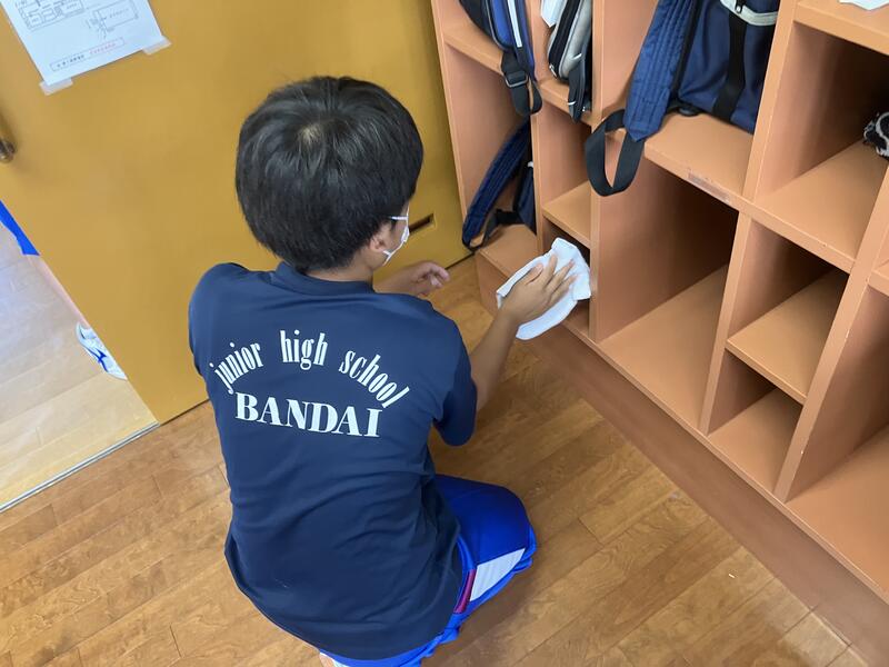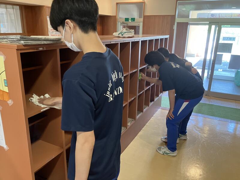 環境整備では、下駄箱の清掃や教室内を隅々まで掃除しました。