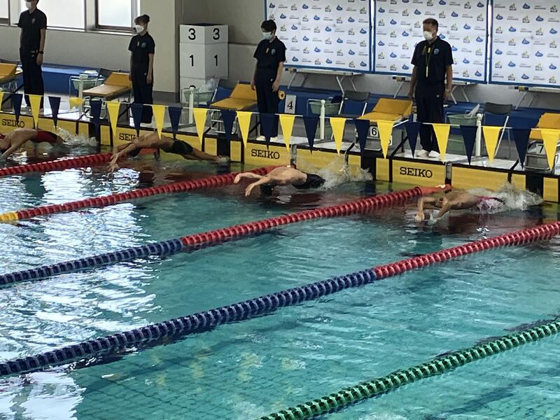 本日の100m背泳ぎでは、見事予選を突破し、決勝に進出しました。