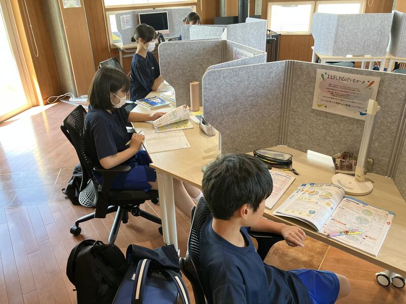 また、交流館の学習室では1年生が夏休みの宿題に取り組んでいました。こちらも頑張ってますね!