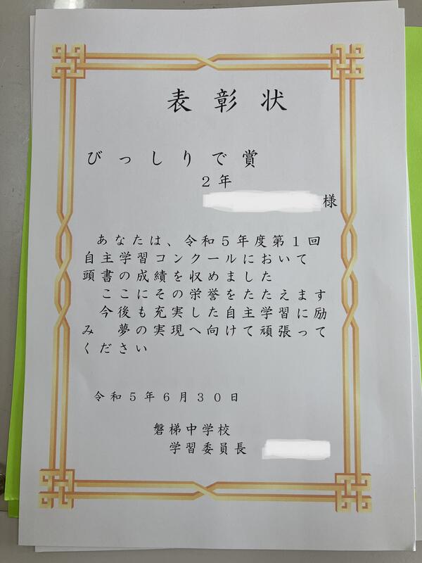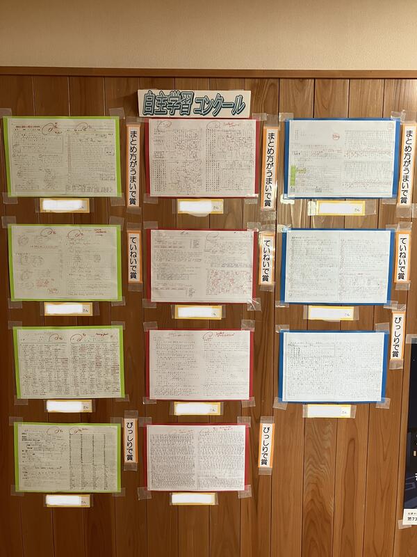 先日の全校集会で表彰されていた自主学習コンクール。