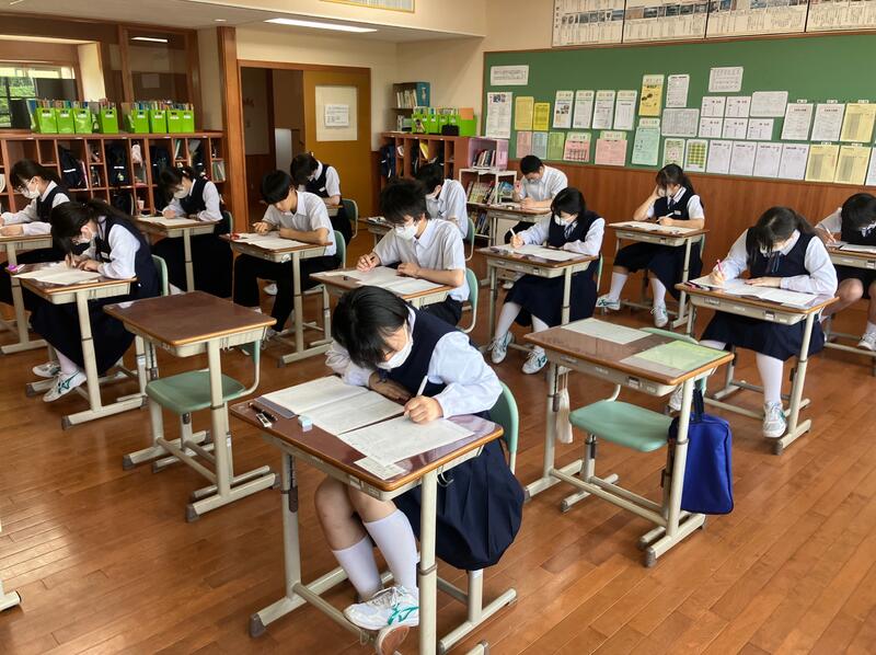 本日は、3年生が第1回目の実力テストを行っています。