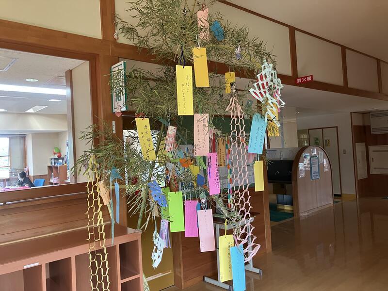 このときの七夕飾りは、教室前の廊下に飾ってあります。