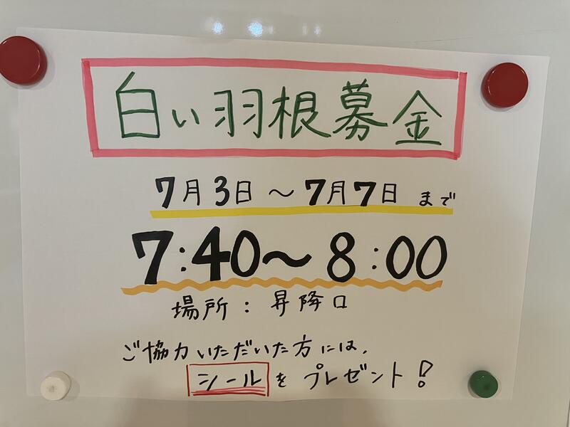 今週は白い羽根募金を行っていました。
