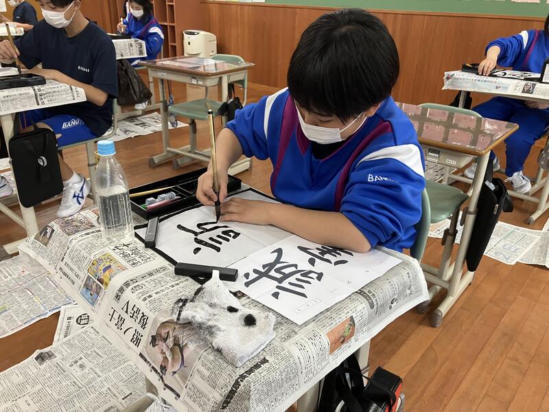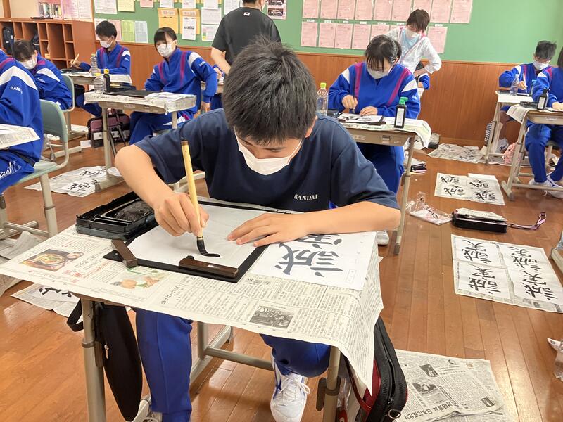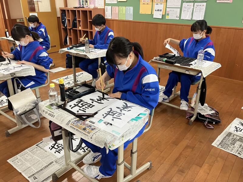 今年度の福島県書き初め展の課題に取り組んでいました。