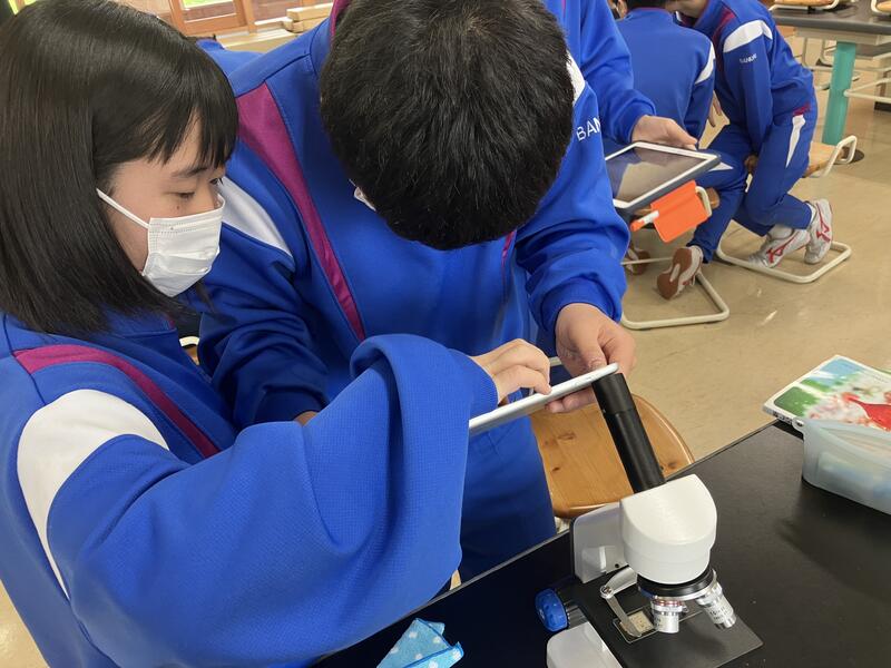 2023年6月1日 10時22分2年生の授業をのぞいてみると、顕微鏡の観察を行っていました。