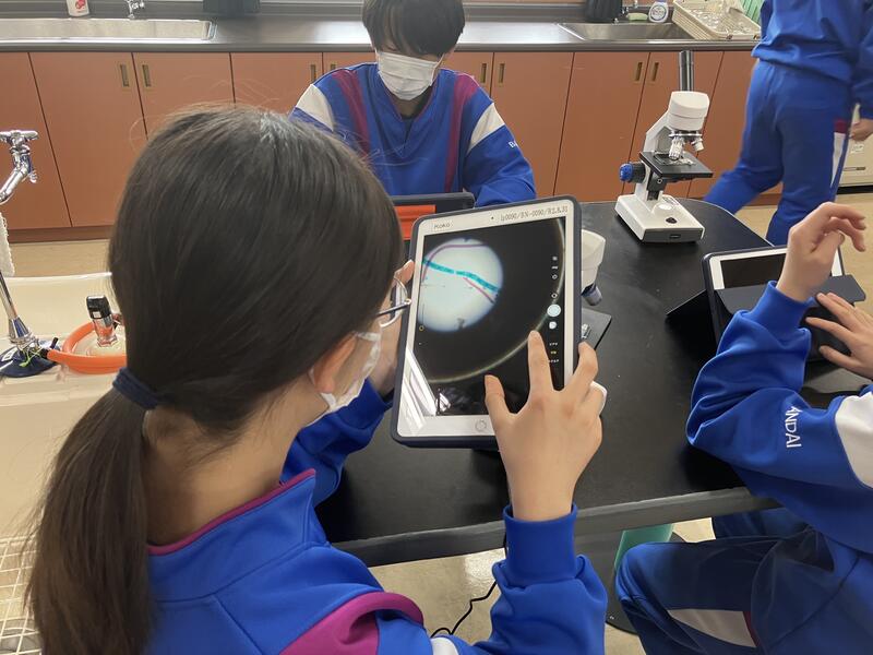 また、顕微鏡のレンズにタブレットのカメラのレンズを近づけて写真も撮っていました。