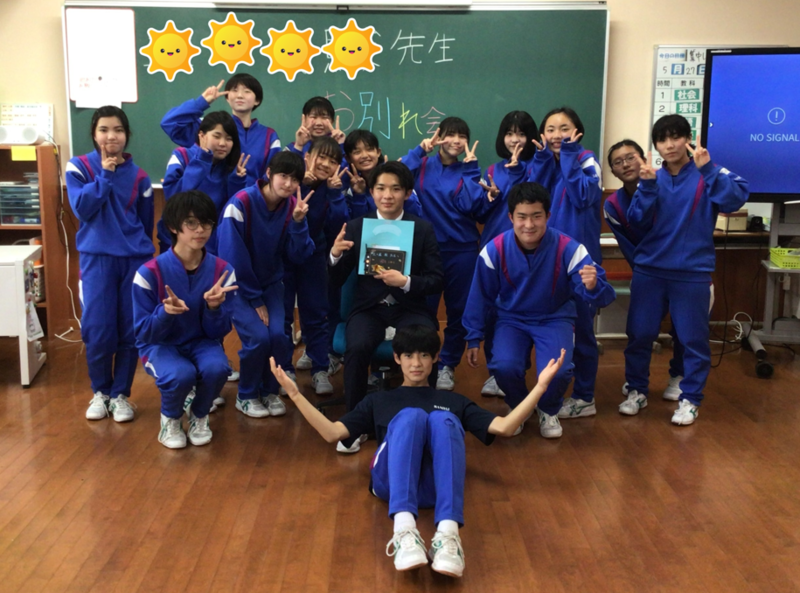 教育実習が本日で終了しました。実習生が配属された2年生では、5校時に教育実習生のお別れ会を行いました。みんなでゲームをやったり、記念写真を撮ったり楽しいひとときを過ごしました 教育実習生のI・S先生、2週間お疲れ様でした。