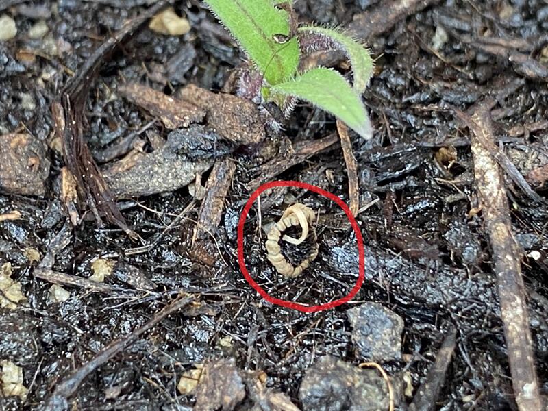 2022年5月31日 18時55分2年生のミニトマトは順調に生長しています。と思ったら、S・Hさんの鉢に、なぜかキノコが生えていました 写真の赤い○で囲まれているところですが、わかりますか? 技術担当のT先生によると、キノコが生えた原因は???ですが、放っておいてもしばらくすれば自然に枯れるだろう、とのことです